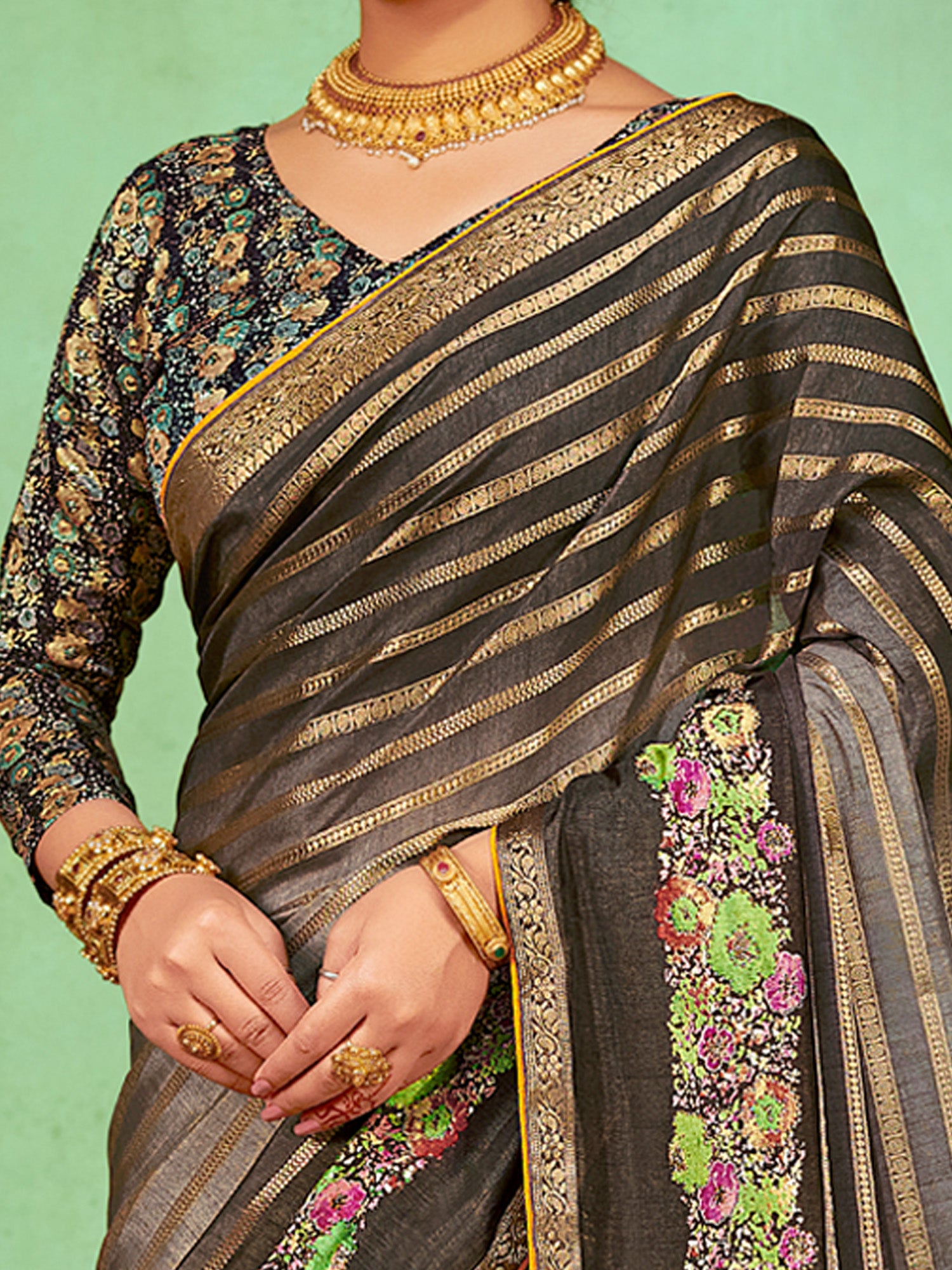 Women's Soft Silk Grey Embellished Designer Saree With Blouse Piece