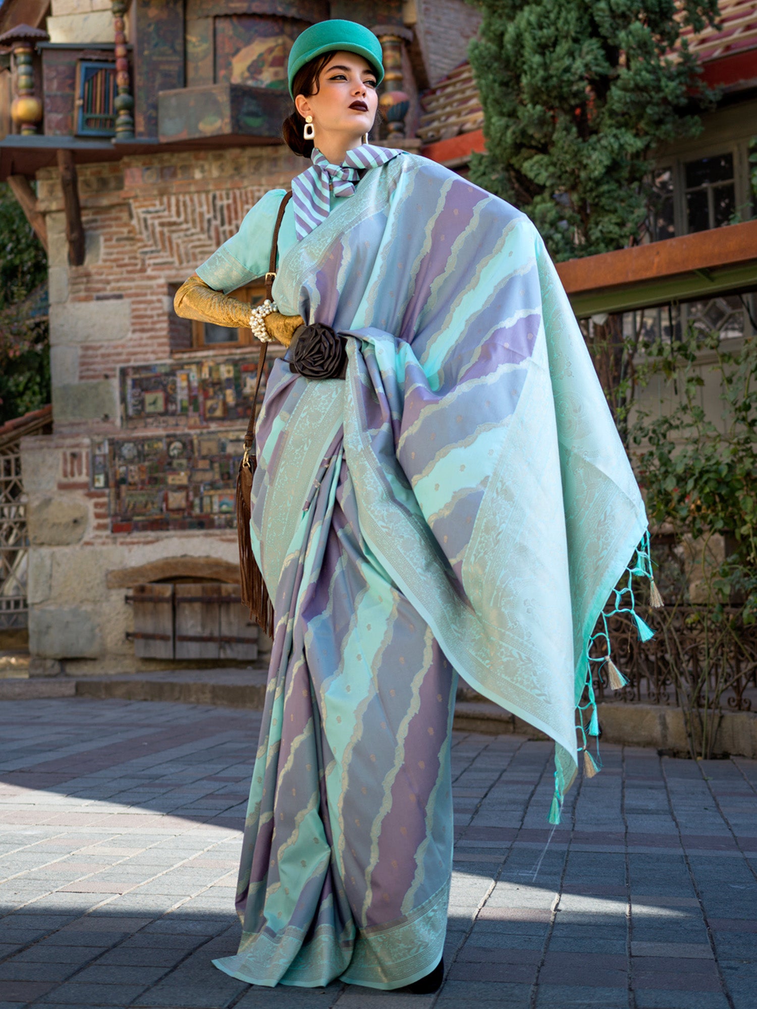 Women's Soft Silk Turquoise Woven Design Designer Saree With Blouse Piece