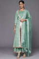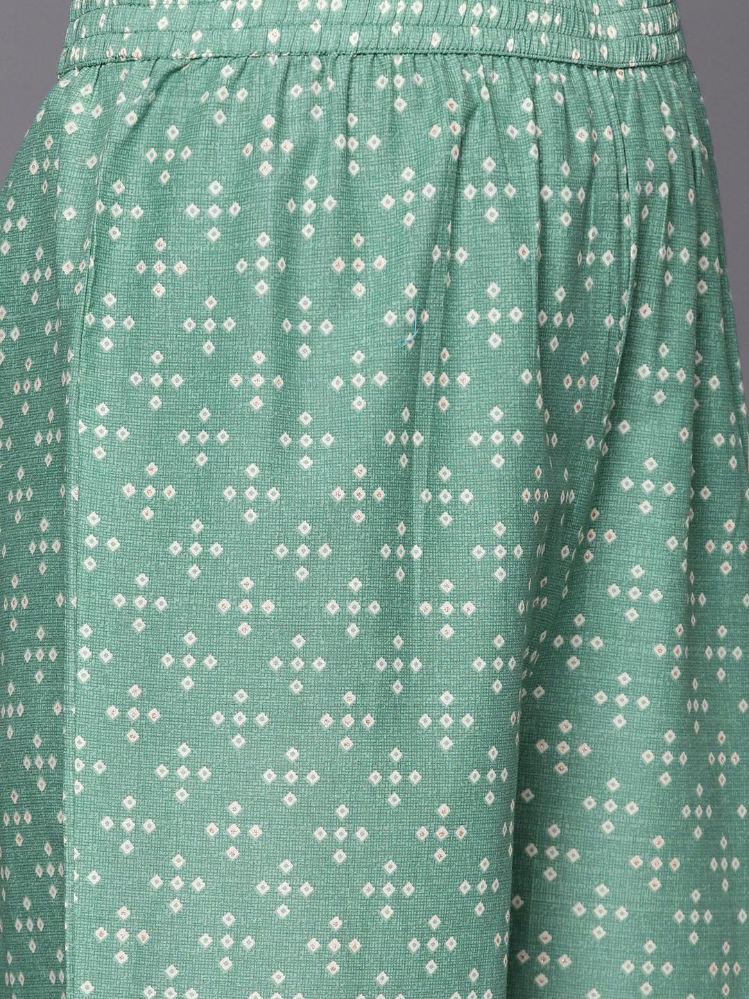 Dhiyona VA Women's Teal Bandhani Printed High Slit Gotta Patti Pure Cotton Kurta with Palazzos & With Dupatta