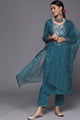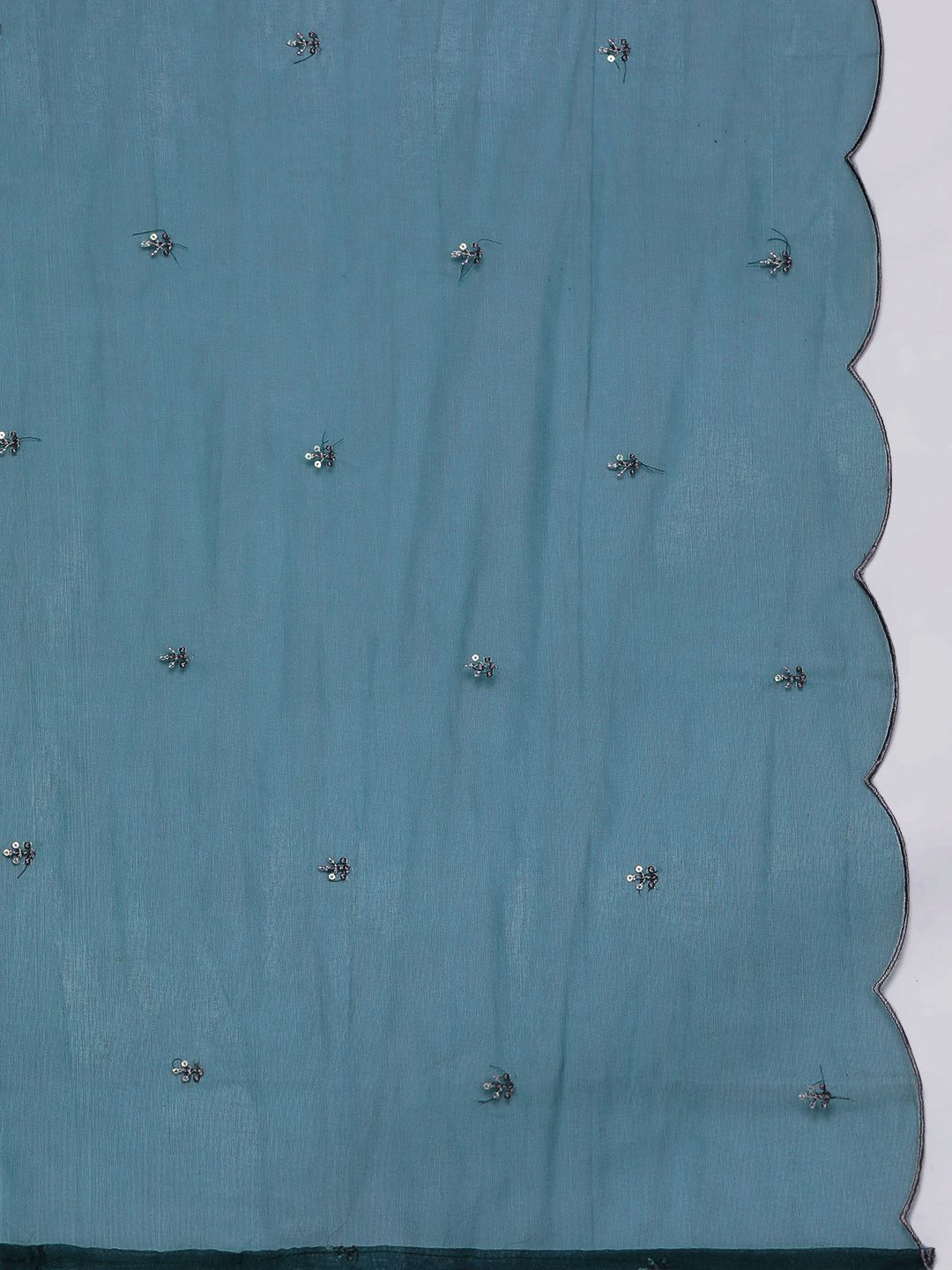 Dhiyona VA Women's Teal Ethnic Motifs Embroidered Sequinned Kurta with Trousers & With Dupatta
