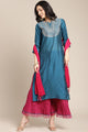 Dhiyona VA Women's Teal & Red Embroidered Kurta & Palazzo With Dupatta