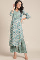 Turquoise blue printed Kurta with Palazzos