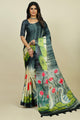 Women's Tussar Silk Black Printed Designer Saree With Blouse Piece