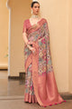 Women's Tussar Silk Blue Digital Print Designer Saree With Blouse Piece