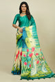 Women's Tussar Silk Sea Green Printed Designer Saree With Blouse Piece