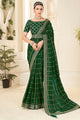Women's Vichitra Silk Green Embellished Designer Saree With Blouse Piece