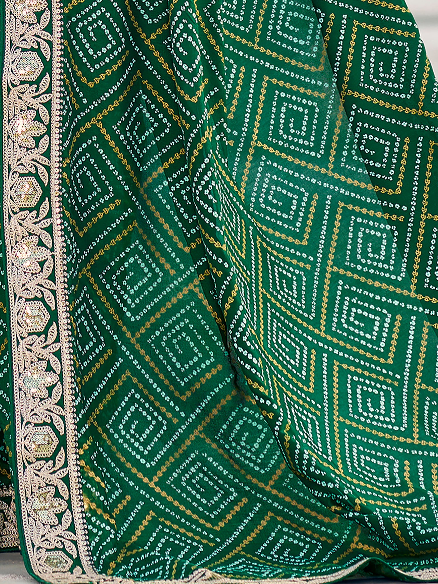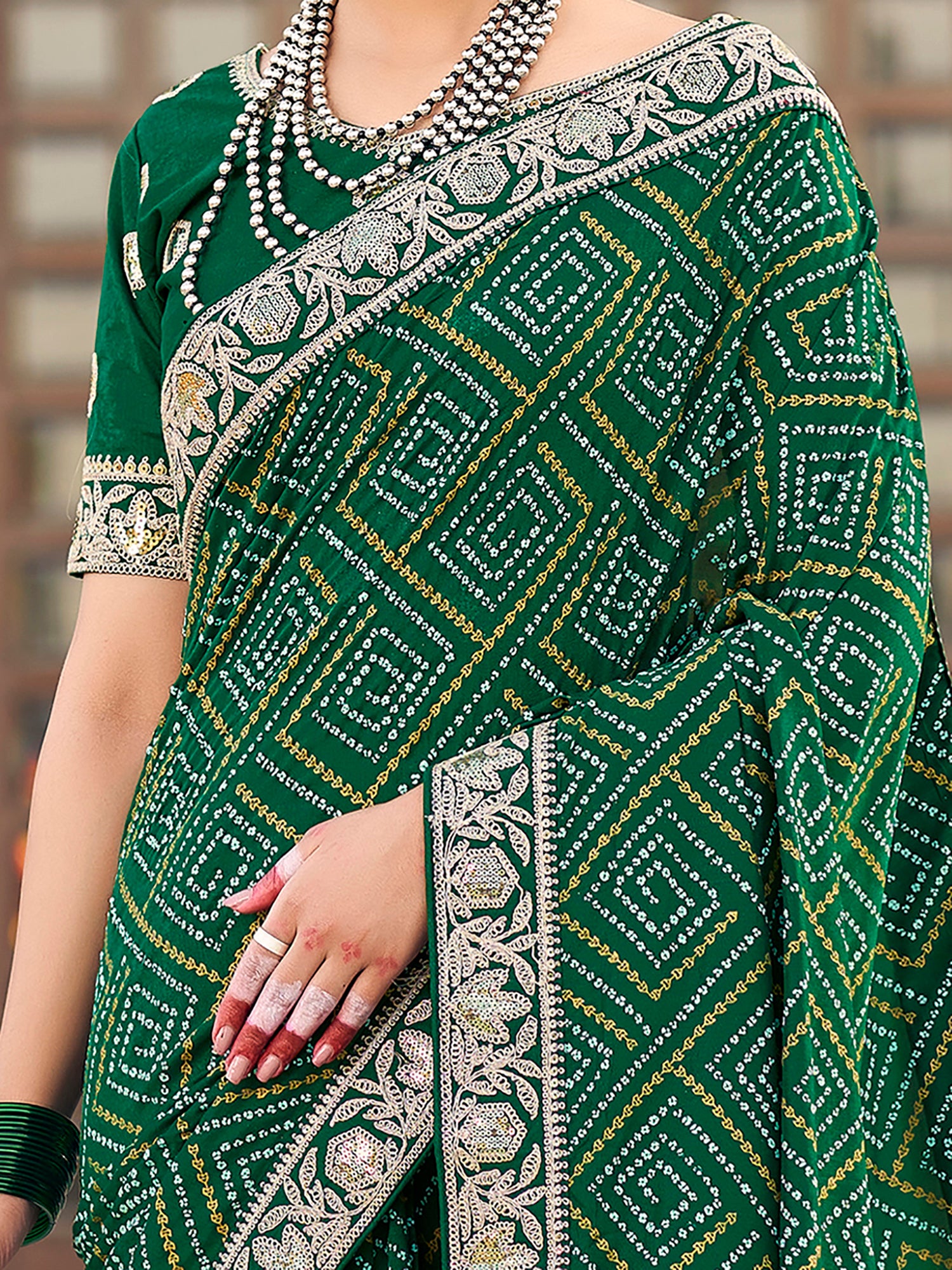 Women's Vichitra Silk Green Embellished Designer Saree With Blouse Piece