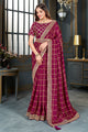 Women's Vichitra Silk Magenta Embellished Designer Saree With Blouse Piece