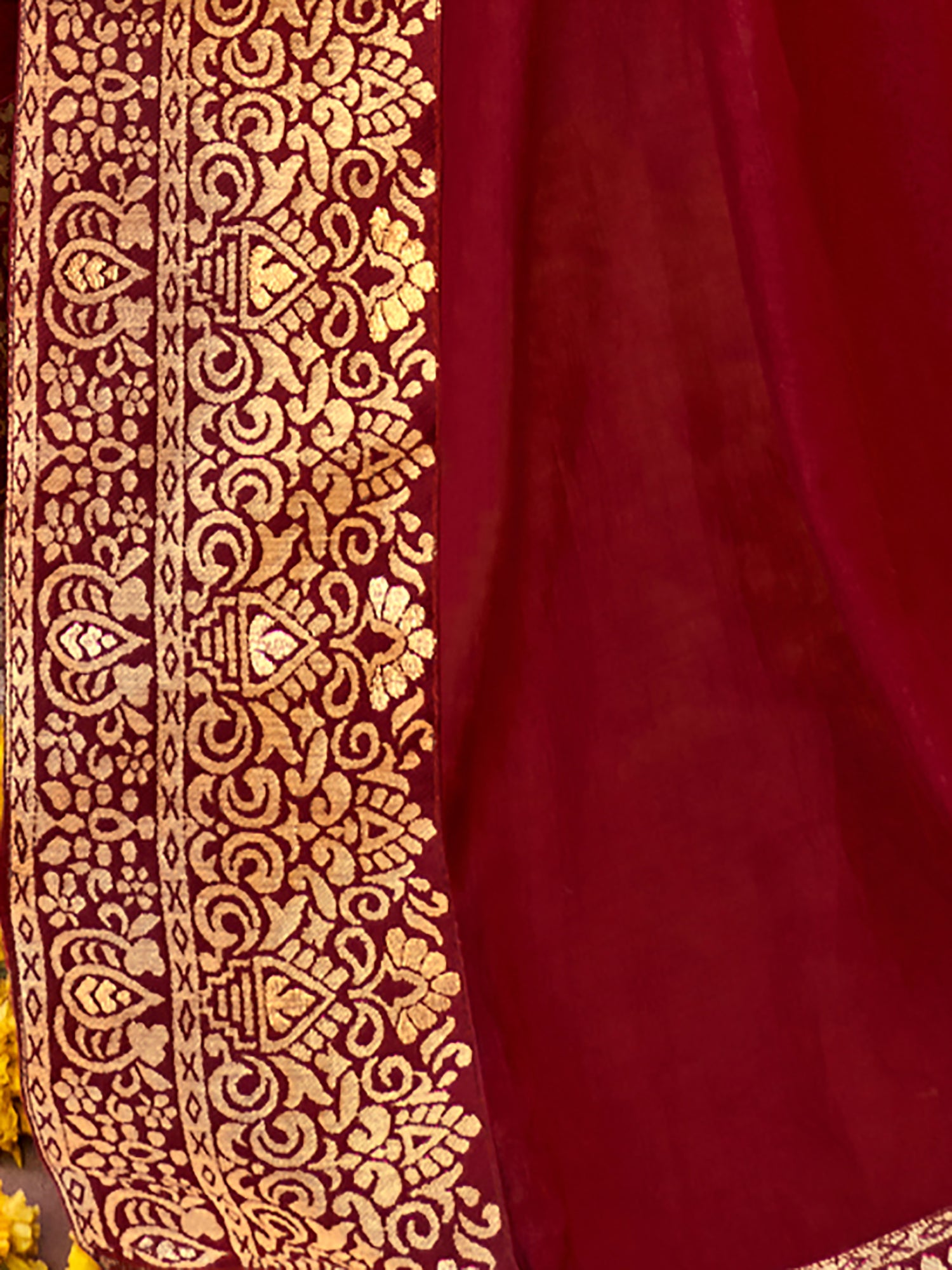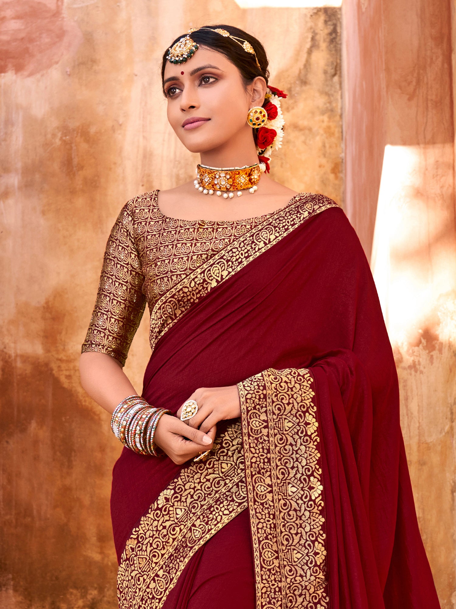 Women's Vichitra Silk Maroon Embellished Designer Saree With Blouse Piece