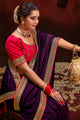 Women's Vichitra Silk Mauve Embellished Designer Saree With Blouse Piece