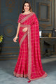 Women's Vichitra Silk Pink Embellished Designer Saree With Blouse Piece
