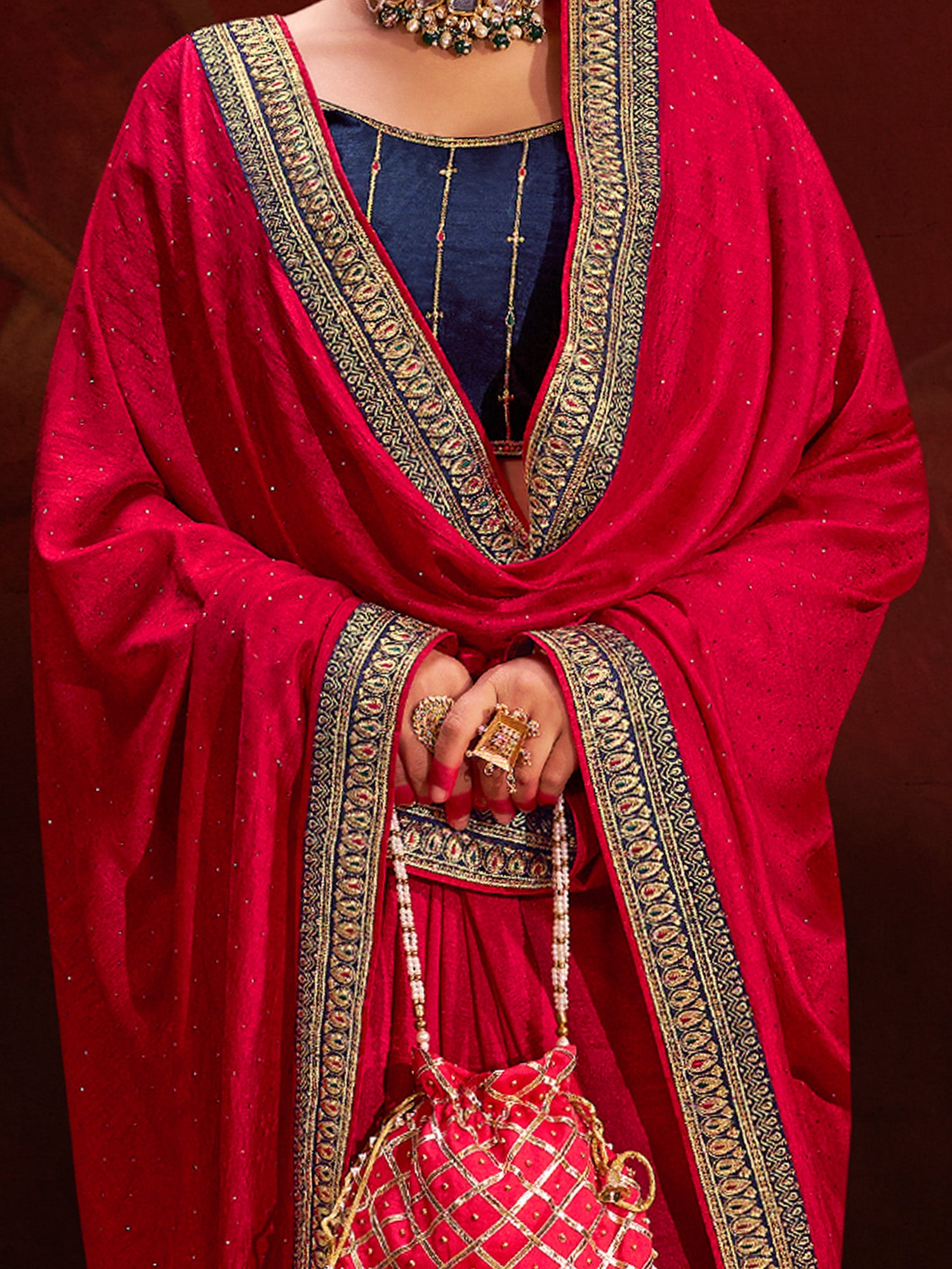 Women's Vichitra Silk Pink Embellished Designer Saree With Blouse Piece