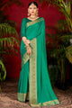 Women's Vichitra Silk Sea Green Embellished Designer Saree With Blouse Piece