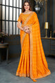 Women's Vichitra Silk Yellow Embellished Designer Saree With Blouse Piece