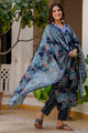 Women Viscose Blue A-Line Kurta And Pant Set With Dupatta