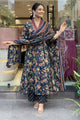 Women Viscose Blue Anarkali Kurta And Pant Set With Dupatta