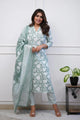 Women Viscose Floral Printed Green Kurta And Pant Set With Dupatta