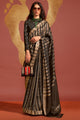 Women's Viscose Silk Black Woven Design Designer Saree With Blouse Piece