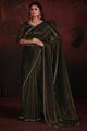 Women's Viscose Silk Olive Embellished Designer Saree With Blouse Piece