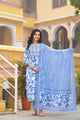 Women White, Blue Floral Print Viscose Rayon Kurta, Pant And Dupatta Set