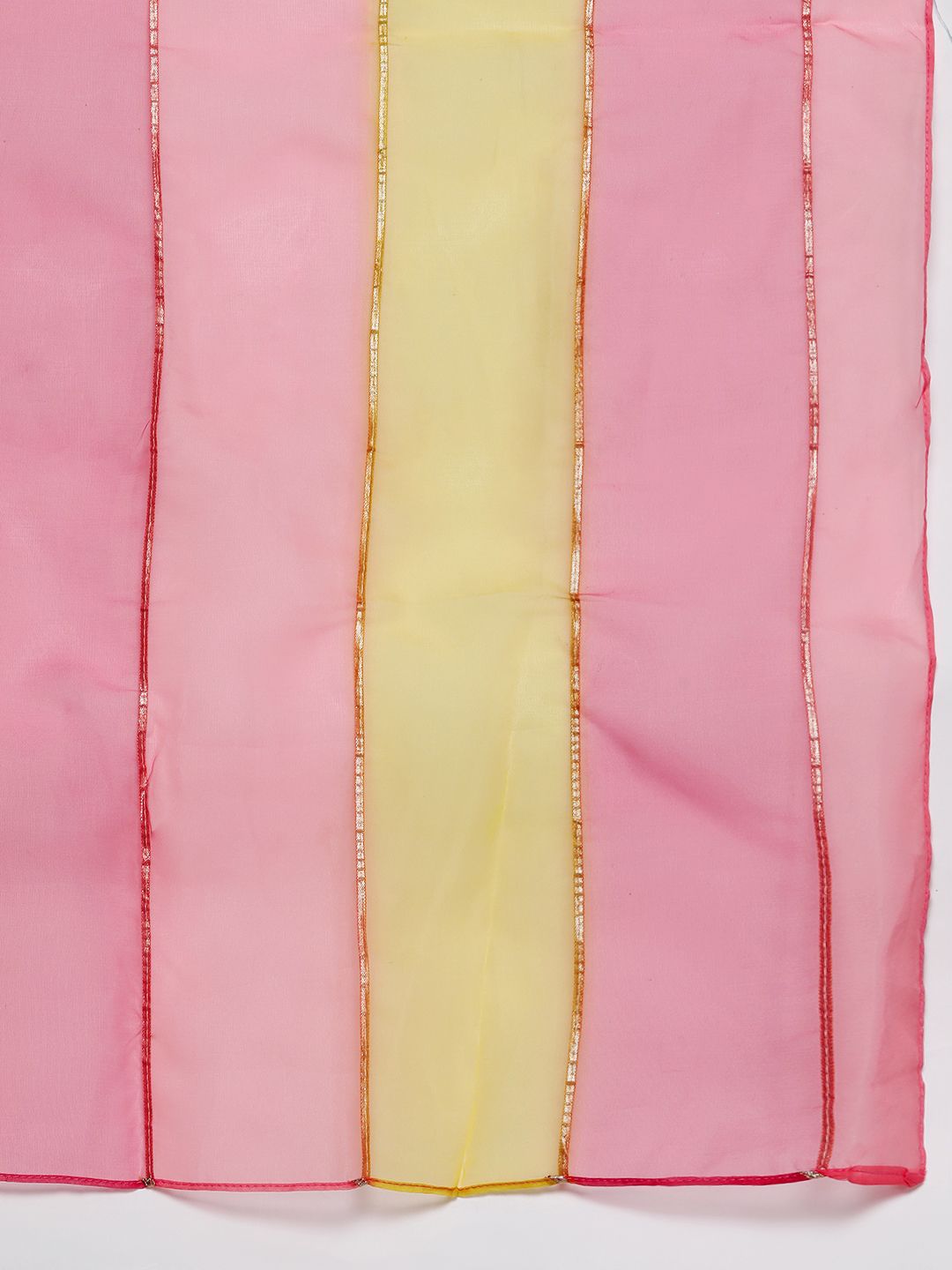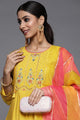 Dhiyona VA Women's Yellow Ethnic Motifs Embroidered Beads and Stones Kurta with Trousers & With Dupatta