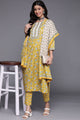 Dhiyona VA Women's Yellow Floral Printed Pure Cotton Kurta with Trousers & With Dupatta