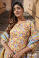 Mustard yellow and grey printed Kurta with Trousers & dupatta