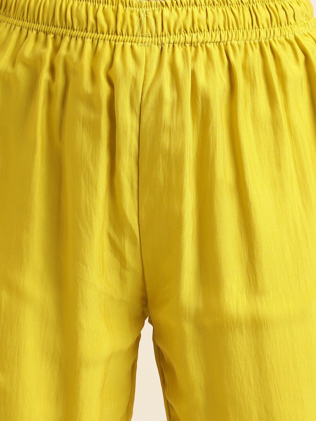 Dhiyona IS Women's Women Yellow & Pink Floral Embroidered Sequinned Kurta With Trousers & Dupatta
