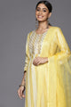 Dhiyona VA Women's Yellow Striped Sequinned Kurta with Trousers & With Dupatta