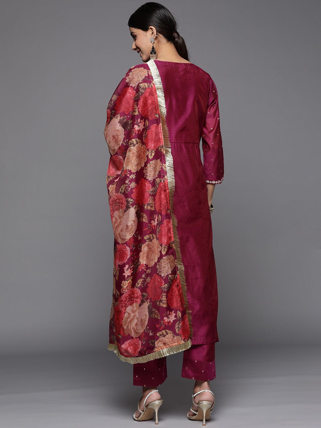 Dhiyona VA Women's Yoke Design Sequinned Chanderi Silk Kurta With Trousers & Dupatta