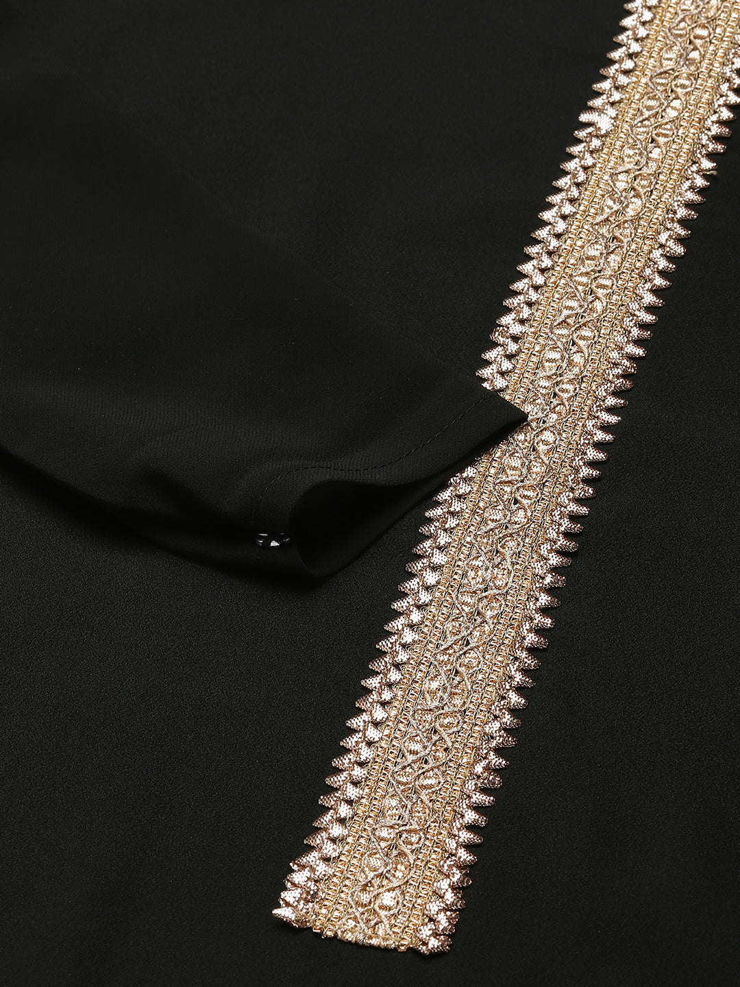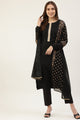Women's Black Poly Crepe Straight Kurta with Pant and Dupatta