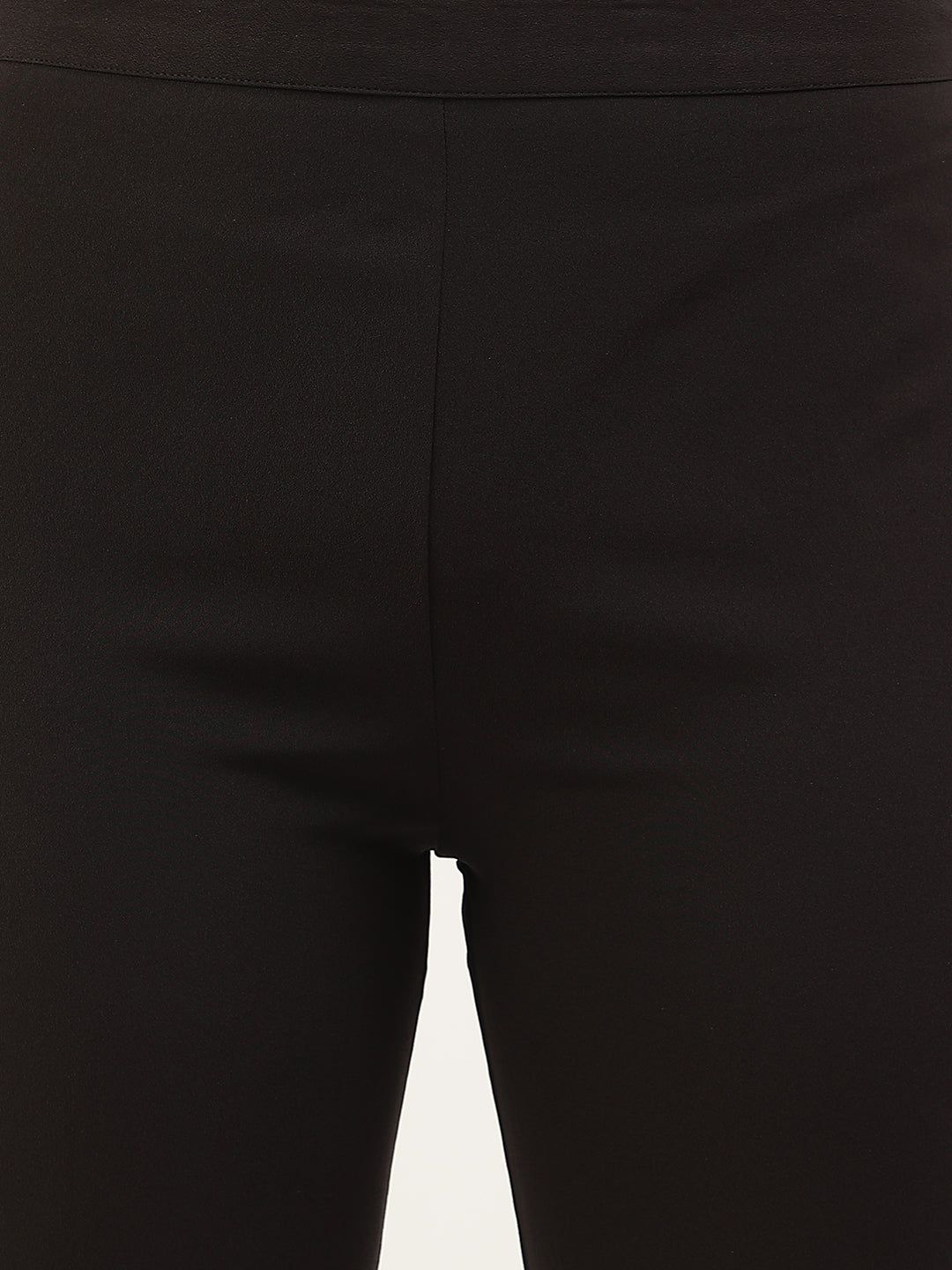 Black Mid Rise Plain Relaxed Cotton Slim Fit Pleated Trousers
