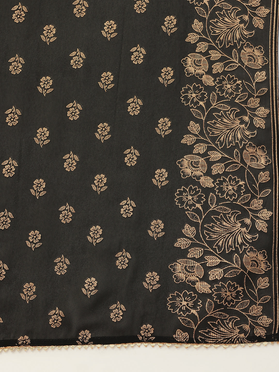 Women Black Embroidery silk Kurta And Pant Set With Dupatta