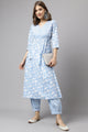Women's Blue Pure Cotton A-line Kurta with Pant