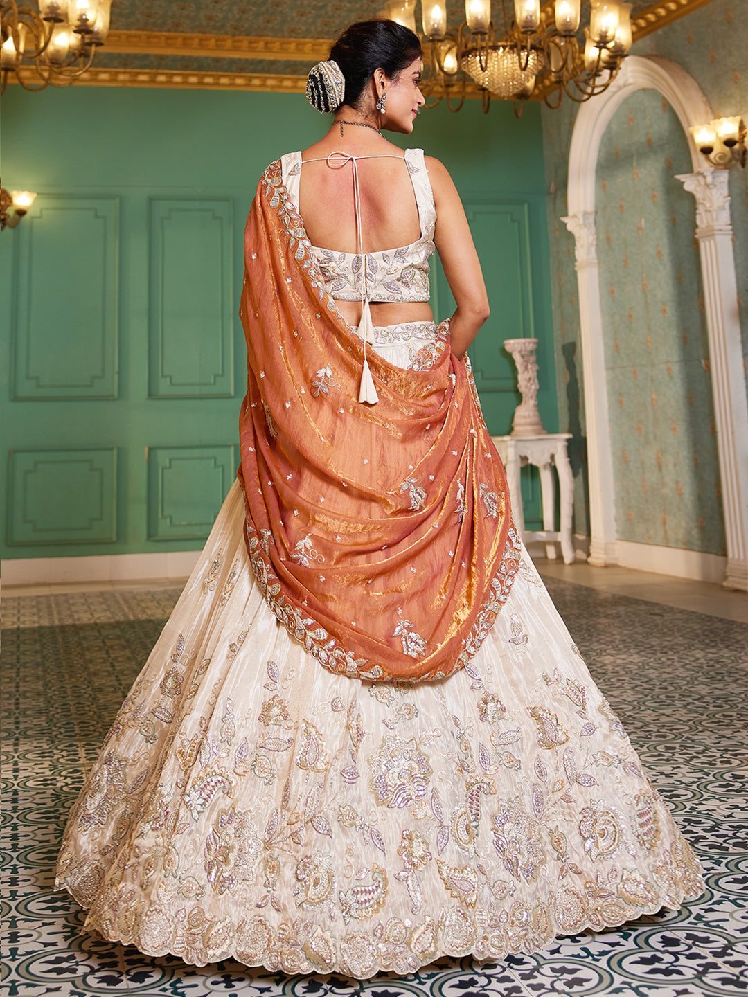 Women's Cream colour tissue Fabric with Sequinse & Thread embroidery Lehenga choli & Dupatta