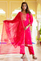 Women's Embroidered Silk Blend Calf Length Straight Kurta with Palazzo & Dupatta Set