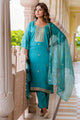 Women's Embroidered Silk Blend Calf Length Straight Kurta with Palazzo & Dupatta Set