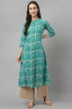 Women's Floral Printed Teal Green Cotton A-Line Kurta