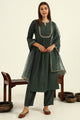 Women's Green Viscose Chanderi A-line Kurta with Pant and Dupatta