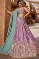 Women's Lavender Satin Silk Sequins embroidery Lehenga choli & Dupatta