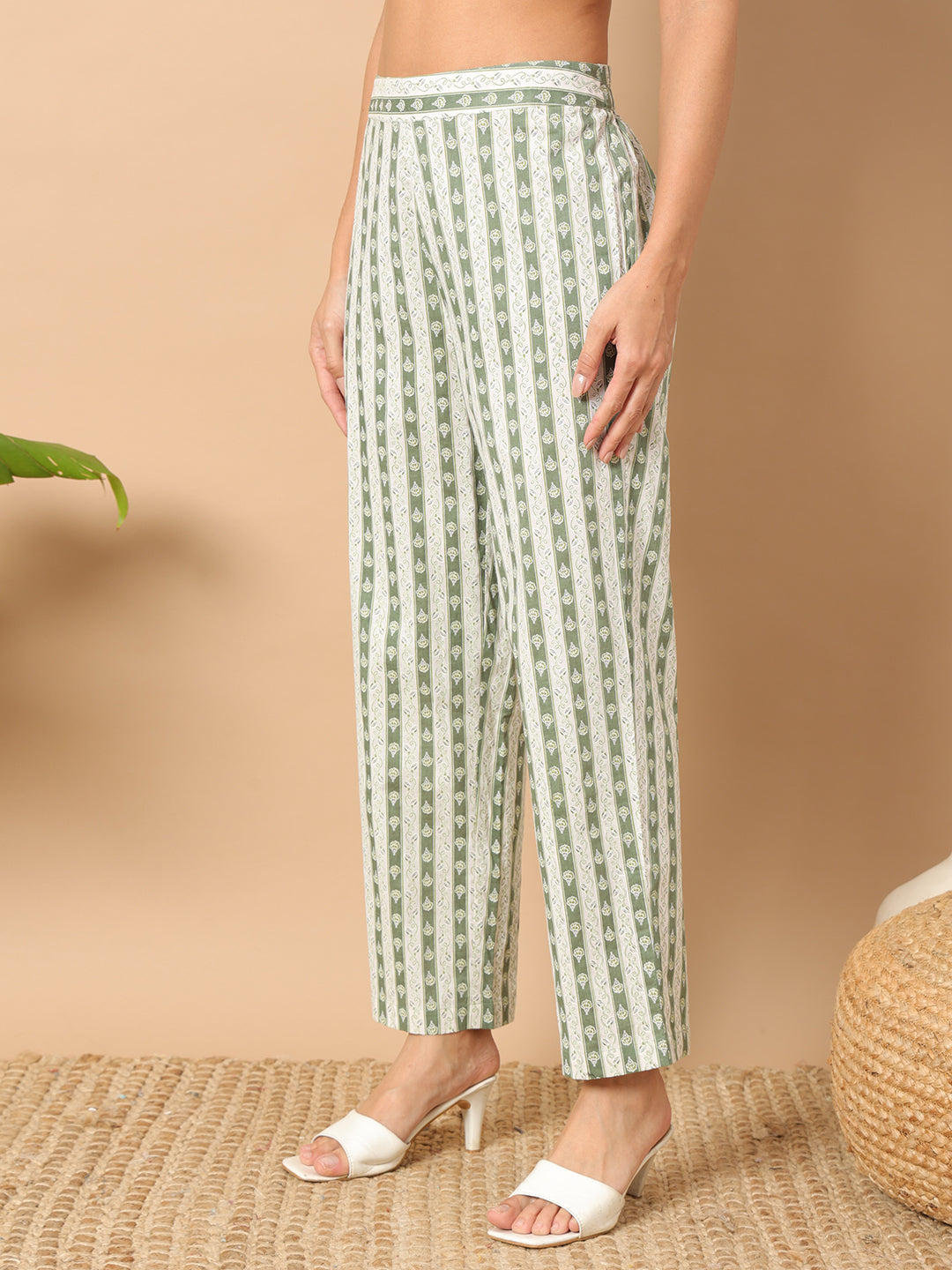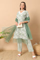 Women's Light Green Cotton Straight Kurta and Pant With Dupatta