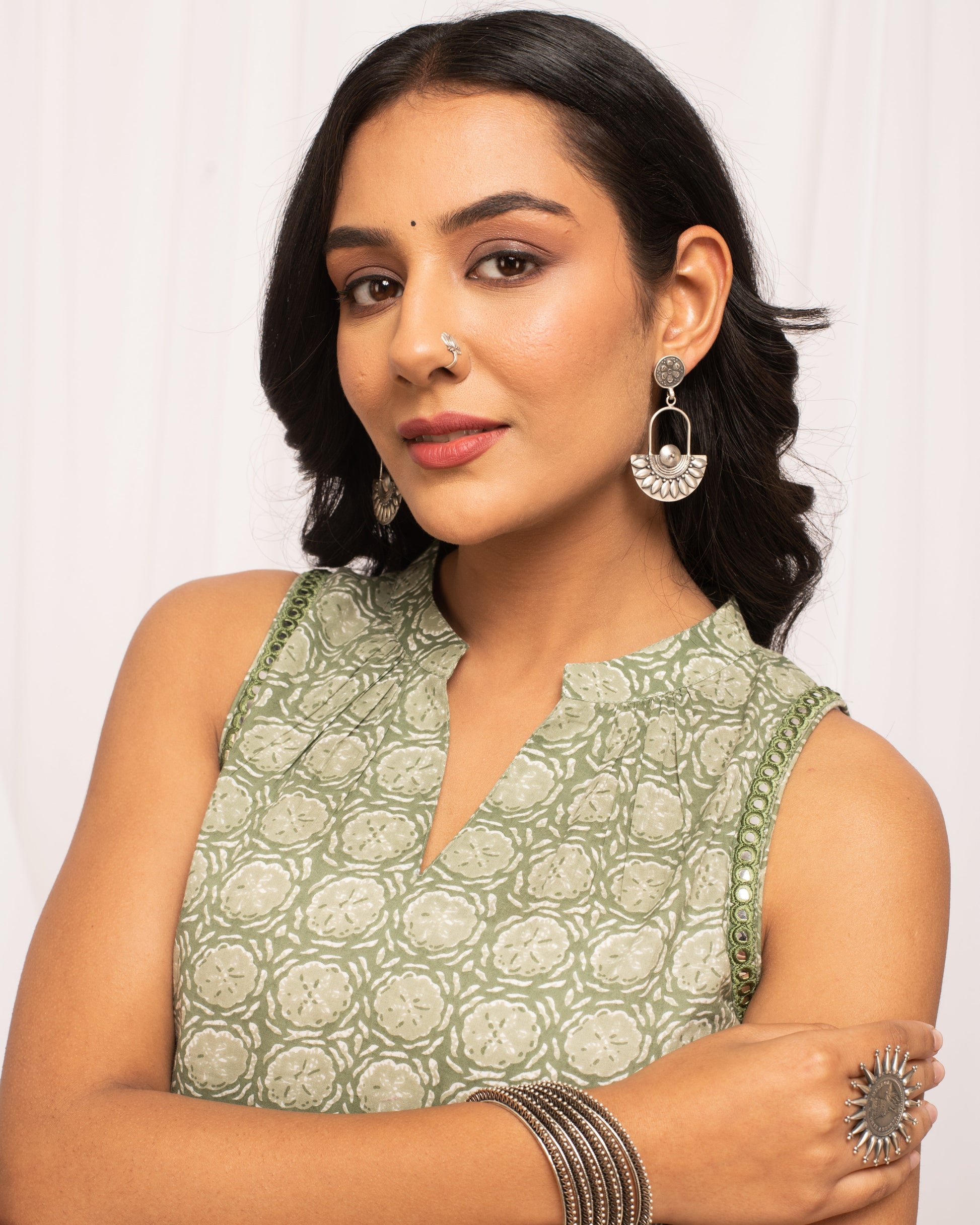 Pair this kurta with white or beige trousers and strappy sandals for a breezy, daytime outfit. Enhance your ensemble with subtle gold jewelry and a light scarf for a sophisticated, put-together look.