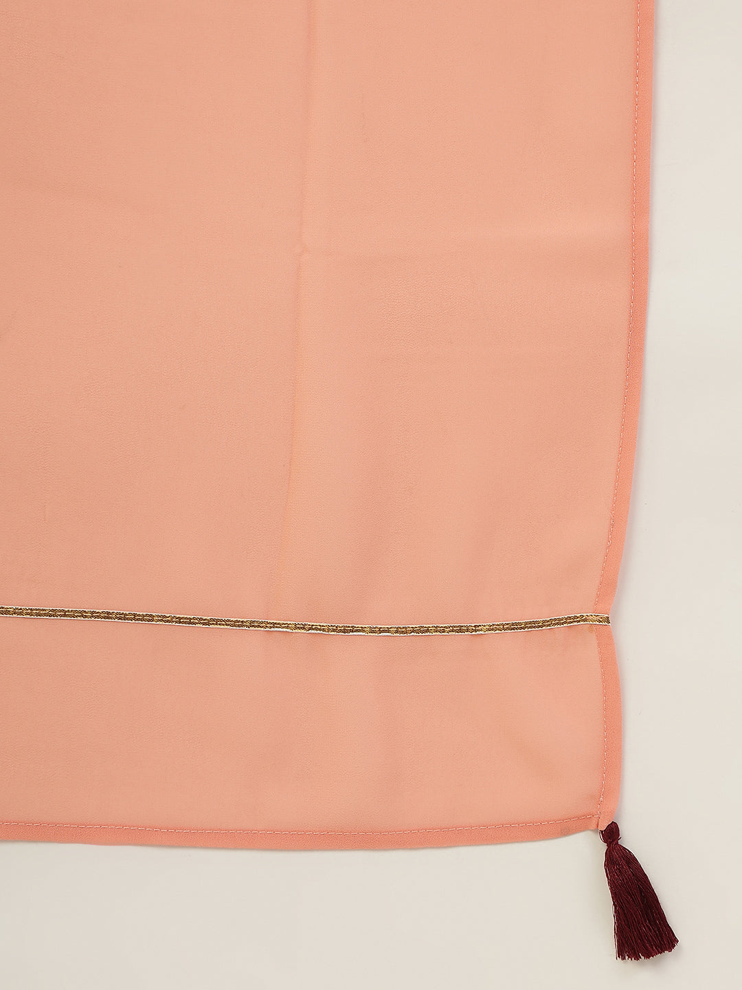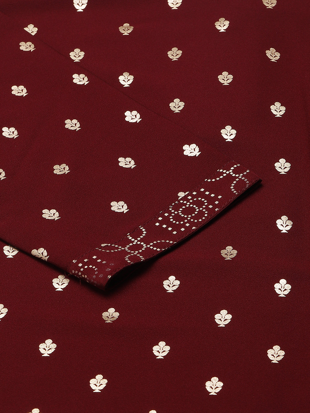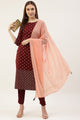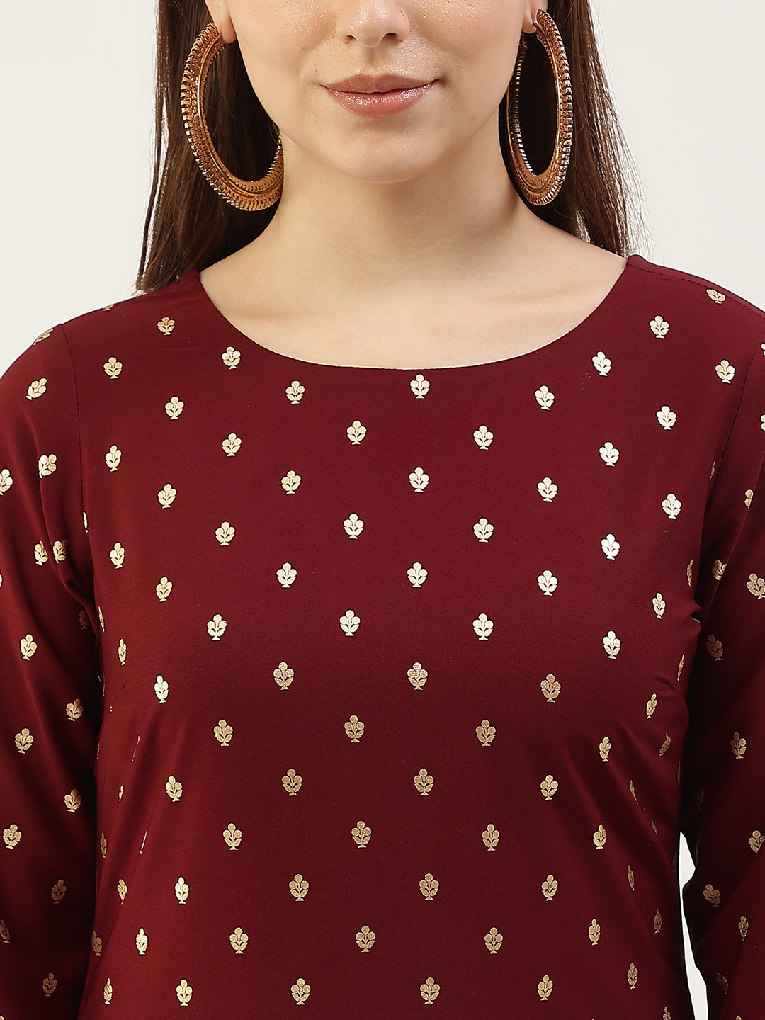 Women's Maroon Poly Crepe Straight Kurta with Pant and Dupatta