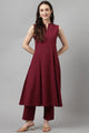 Women's Maroon Rayon A-line Kurta with Pant