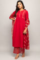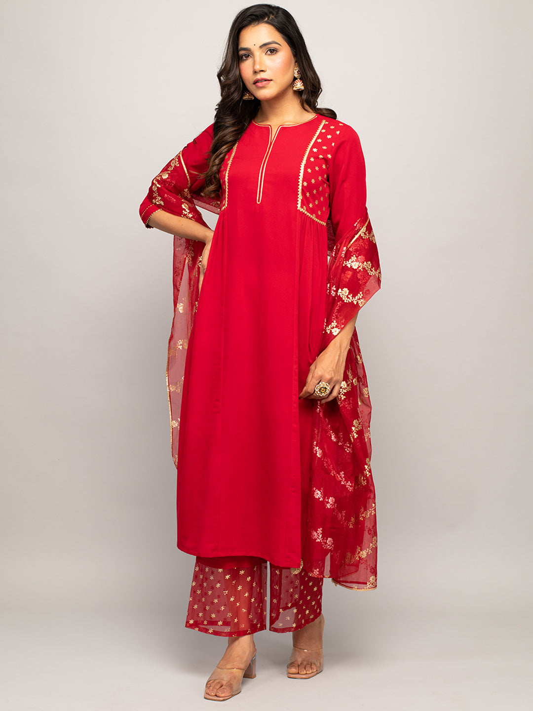 Women's Red Crepe A-line Kurta with Palazzo And Dupatta