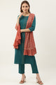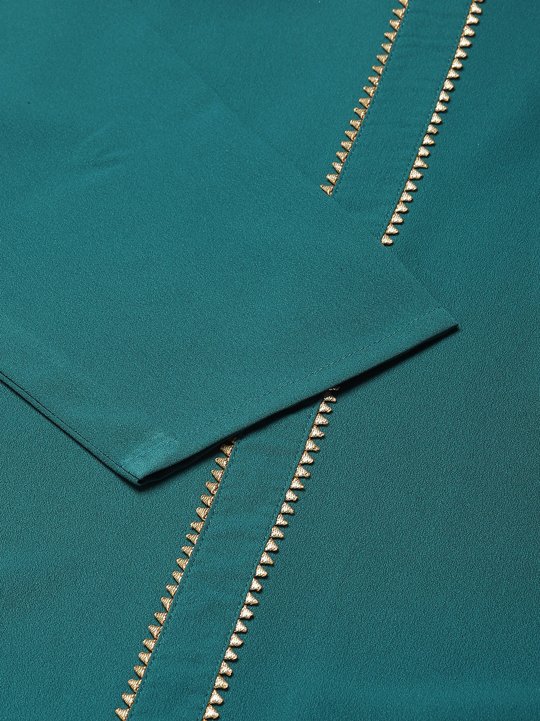 Women's Teal Blue Poly Crepe Straight Kurta with Pant and Dupatta