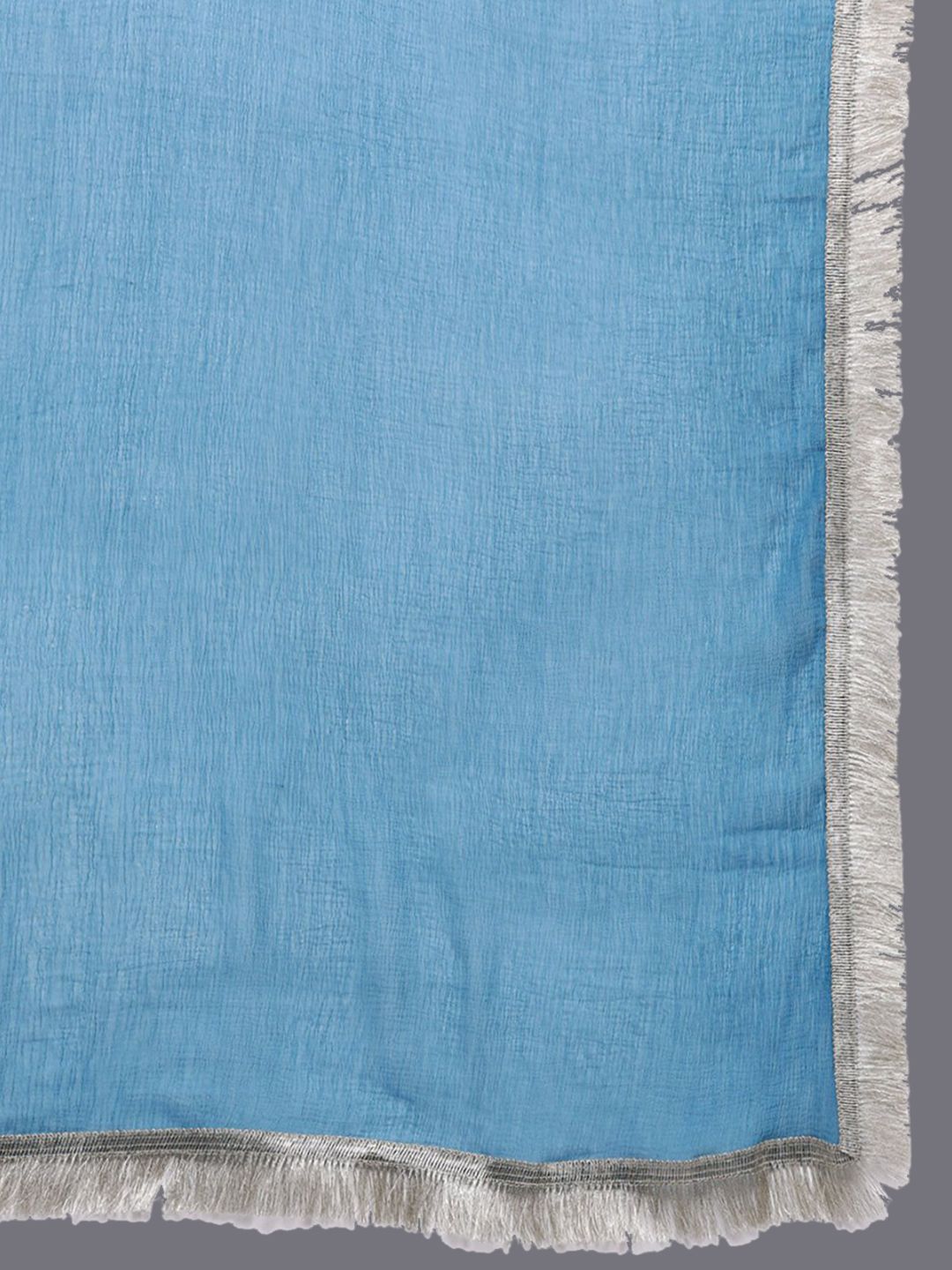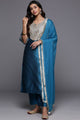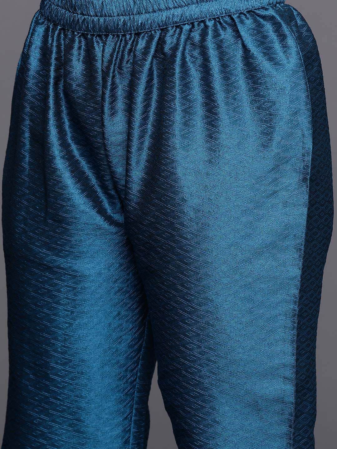 Blue, silver toned & pink woven design Kurta with Trousers with dupatta