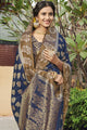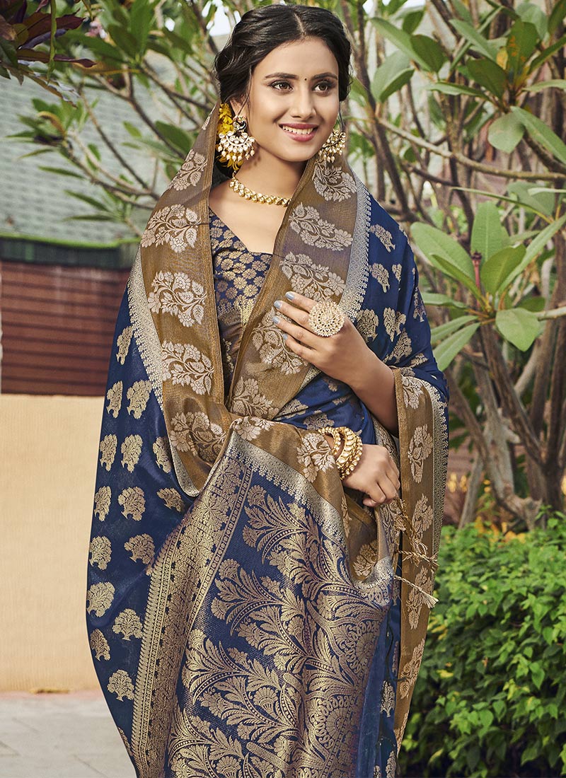 Dhiyona GR Women's Yashomati Indigo Blue Zari Woven Design Chanderi Cotton Saree