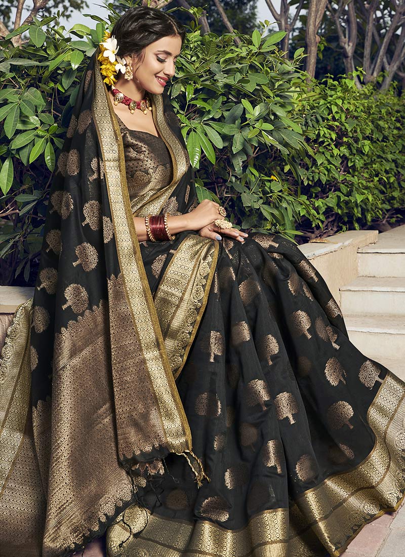 Dhiyona GR Women's Yashomati Leather Black Zari Woven Design Chanderi Cotton Saree