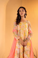 Yellow and pink and grey printed Kurta with Trousers with dupatta
